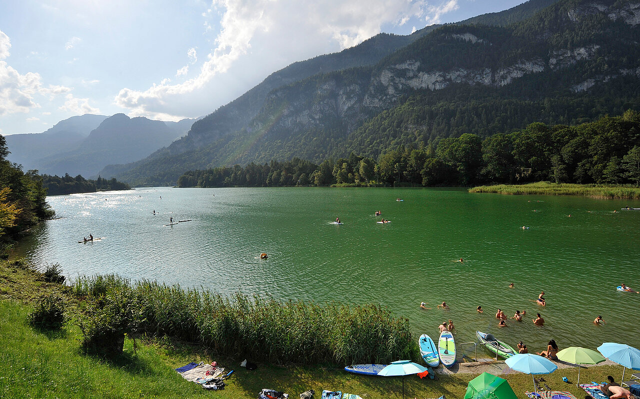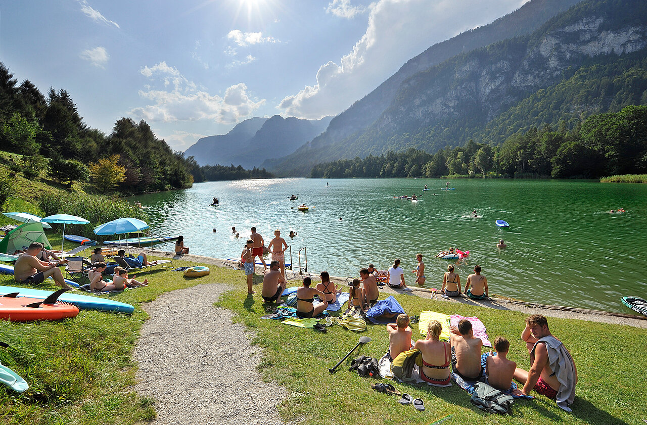 Der Reintalersee ist der größte der Kramsacher Seen und gehört wie der Krummsee mit bis zu 25°C zu den wärmsten Badeseen Tirols. Camping Seeblick Toni mit eigener Liegewiese und Spielplatz befindet sich direkt beim See. Rund um den Naturbadesee führt ein schöner Wanderweg. Für Abenteurer wartet der Klettersteig Reintalersee.