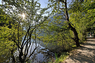 Entlang des Weges befinden sich mehrere gemütliche Restaurants und Seeterrassen. Hier können Sie eine kleine Pause einlegen und regionale Spezialitäten genießen – oft mit herrlichem Blick auf den See.